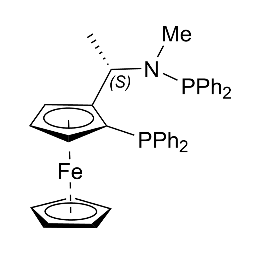 Long Description: (S)-1-[(R)-2-Diphenylphosphinoferrocenyl](N-methyl)(N-diphenylphosphino)ethylamine (S)-Me-Bophoz