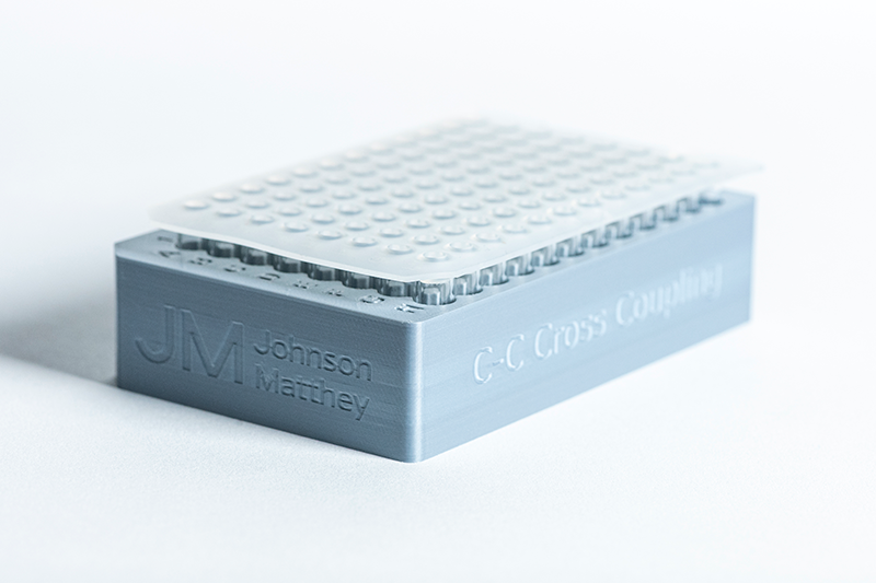 Johnson Matthey’s 96-well catalyst screening plates are designed to accelerate hit identification for high-throughput experimentation workflows. The plates contain 24 unique precatalysts with 4 samples of each, designed for cross-coupling reactions. The homogeneous precatalysts included in each plate are selected from JM’s expansive product portfolio and loaded at a standard 1 μmol quantity using chemical-coated glass beads (ChemBeads)¹ solid dispensing technology.